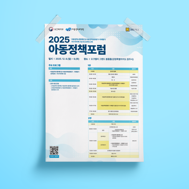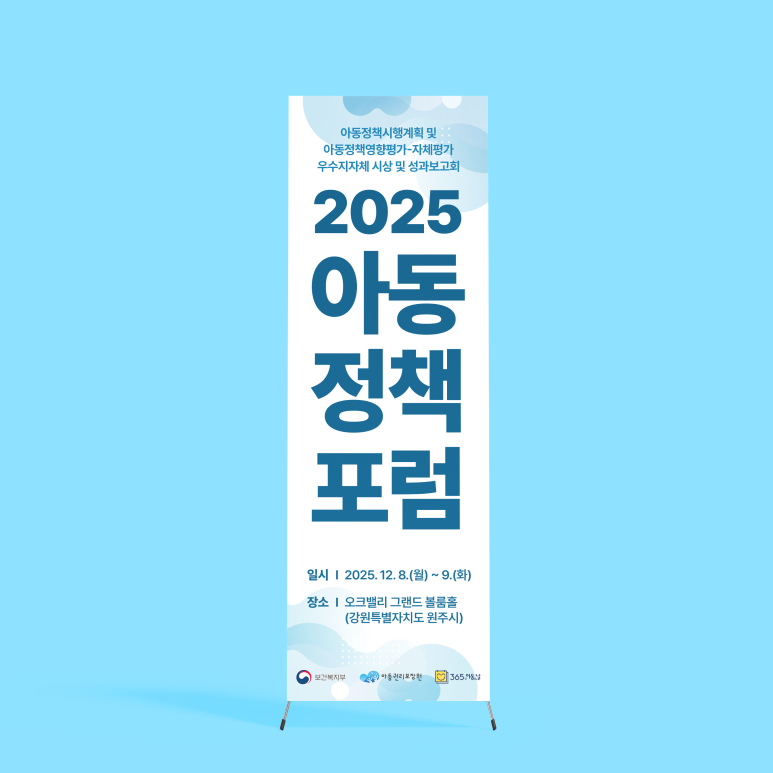 '2025 아동정책포럼'의 디자인 프로젝트(포스터, X배너, 현수막, 자료집)입니다.