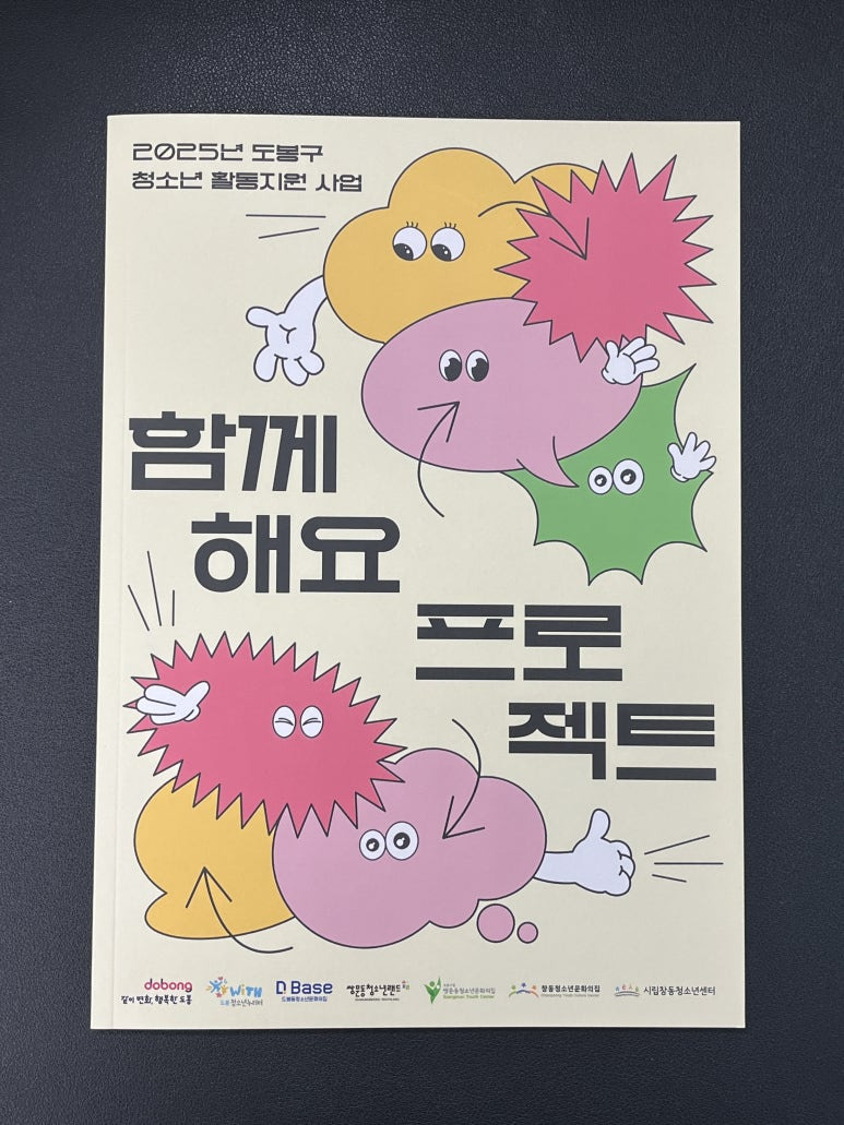 '2025 도봉구 청소년 활동지원 사업 함께해요 프로젝트' 성과 공유 책자 디자인입니다.