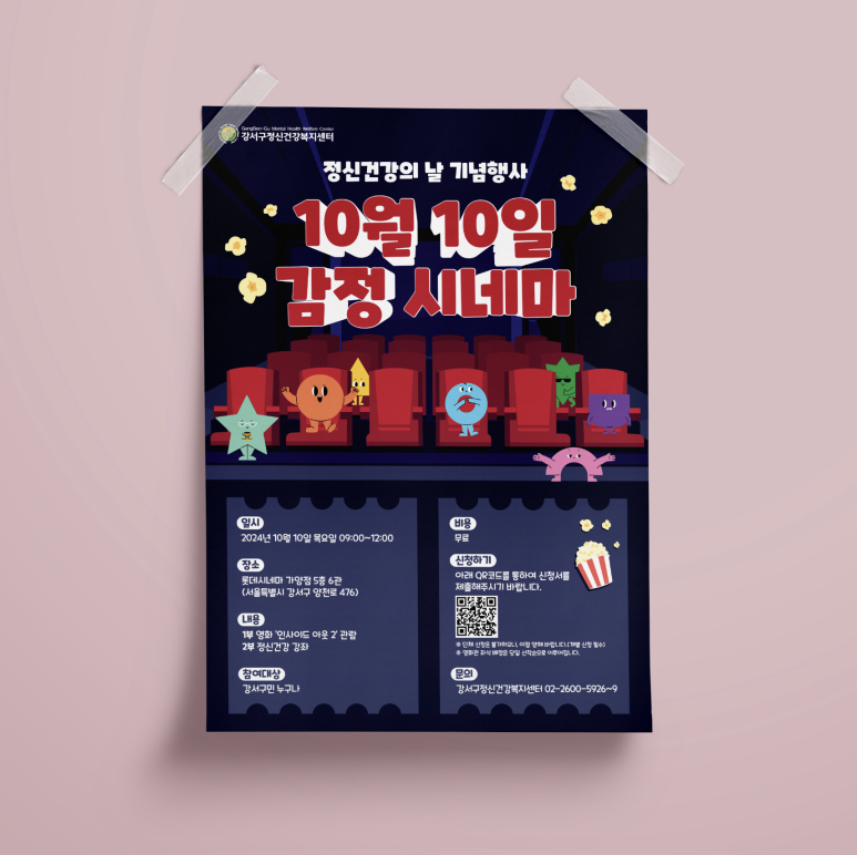 이번에는 정신건강의 날 기념행사 〈10월 10일 감정 시네마〉 포스터를 디자인했습니다.