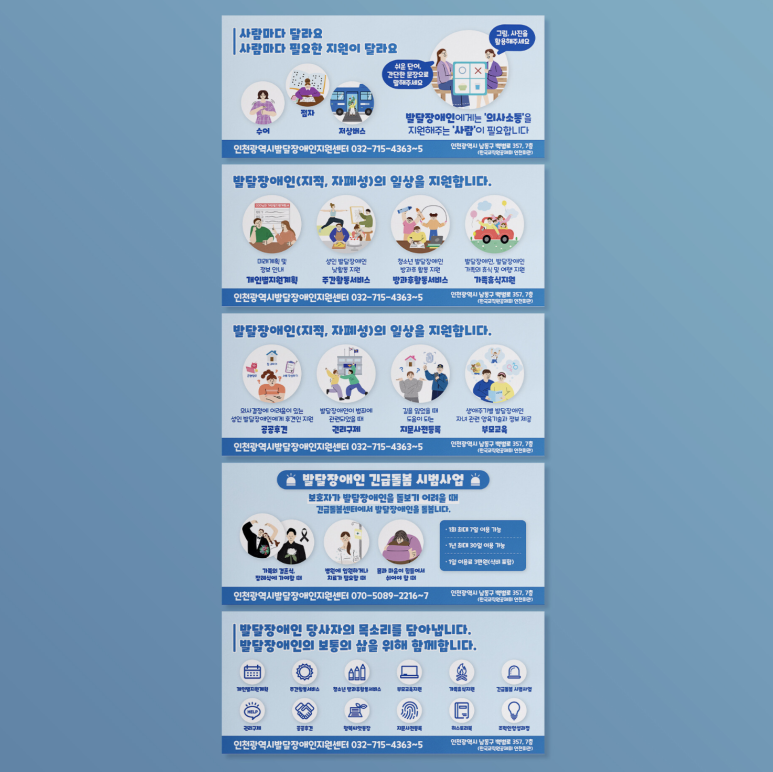 발달장애인 지원 사업을 알리는 정보 전단 디자인을 제작했습니다.