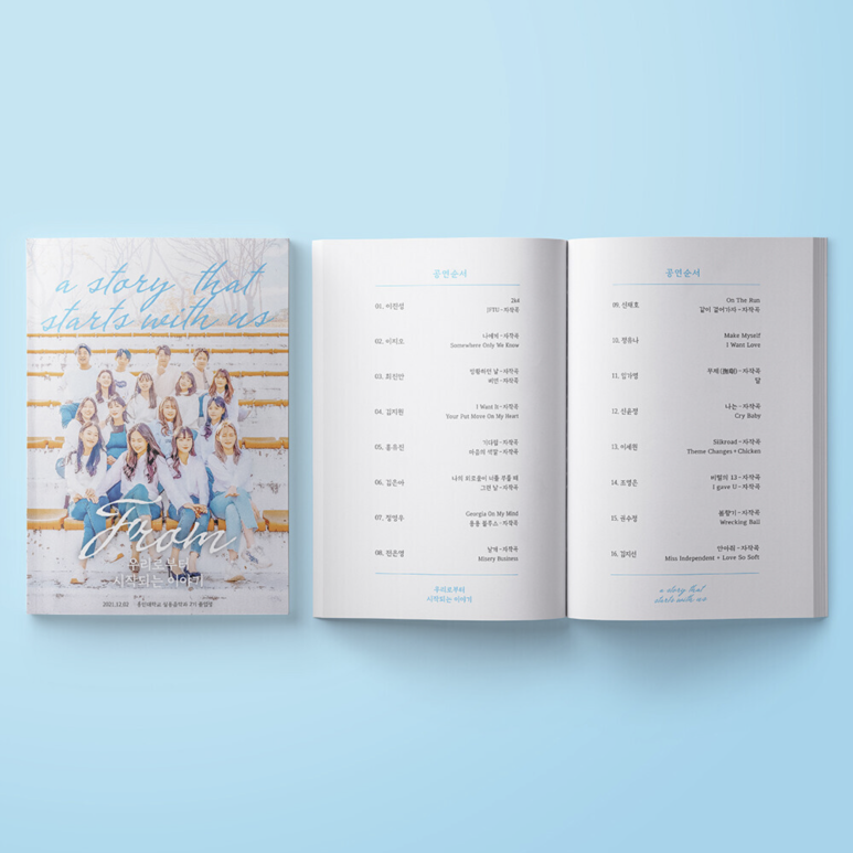 오늘 소개할 작업은 용인대학교 실용음악과 졸업공연을 위한 공연 프로그램북 디자인입니다.